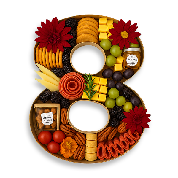 Customize your order with a number or letter charcuterie board. Items included in the letters are the same as signature fig+brie board items